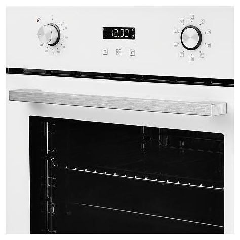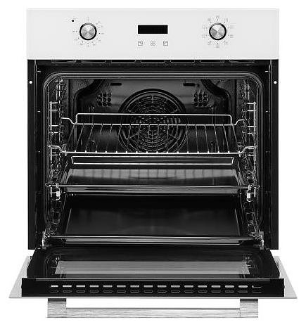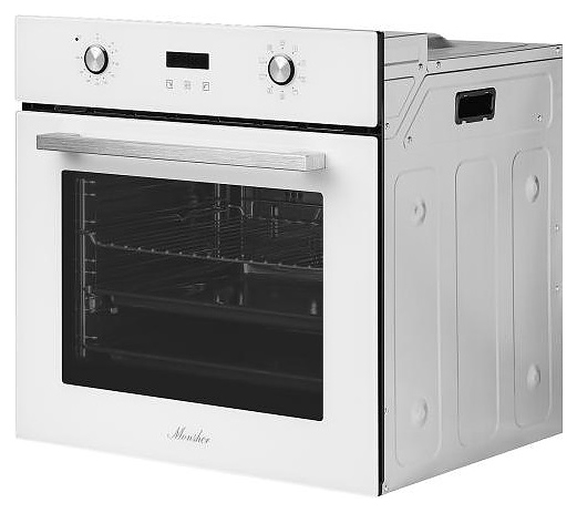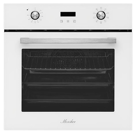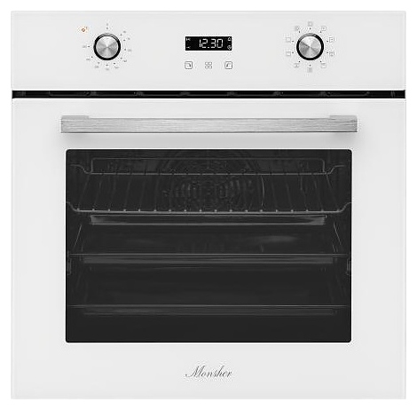 Электрический духовой шкаф Monsher MOE 6092 Blanc предназначен для приготовления большого ассортимента блюд в домашних условиях. Модель оснащена камерой с расположенным в задней стенке вентилятором и кольцевым нагревательным элементом, верхним и нижним нагревательными элементами, верхним грилем, 2 боковыми стойками с 5 уровнями направляющих для противней, откидной дверью со смотровым окном и уплощенной горизонтальной рукояткой, кабелем питания с вилкой, электромеханической панелью управления с 2 цилиндрическими поворотными переключателями, сенсорными клавишами и светодиодным цифровым дисплеем с белой подсветкой индикации. Корпус выполнен из высококачественной стали, фронтальные панели с покрытием эмалью белого цвета, боковые стойки, направляющие и решетка для гриля с хромированным покрытием, фурнитура с серебристой поверхностью. В комплект поставки входят решетка для гриля, 2 противня: стандартный и глубокий, инструкция по эксплуатации и гарантийный талон. Особенности: