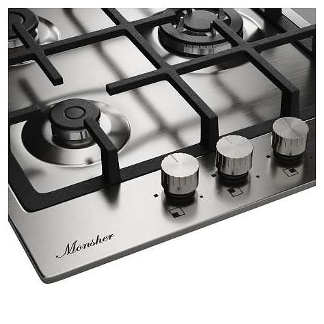 Газовая варочная панель Monsher MSG 45 Acier предназначена для приготовления большого ассортимента блюд на предприятих общественного питания и в домашних условиях. Модель оснащена 3 конфорками различной мощности, решеткой, кабелем питания и расположенной в центре фронта панелью управления с 3 поворотными переключателями. Рабочая поверхность выполнена из высококачественной нержавеющей стали, решетка – из чугуна, фурнитура с серебристой поверхностью. В комплект поставки входят жиклеры под сжиженный газ, инструкция по эксплуатации и гарантийный талон. Особенности: