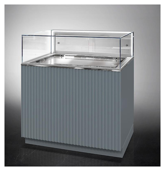 Напольная кондитерская витрина Finist GLASSIER LUX GL-15/55/3 предназначена для кратковременного хранения и предпродажной демонстрации десертов и кондитерских изделий на предприятиях общественного питания и торговли. Модель оснащена охлаждаемой камерой-накопителем, раздвижными дверьми-купе и светодиодной подсветкой. Фасады выполнены из МДФ, купол - из просветленного стекла, дно - из нержавеющей стали. Особенности: