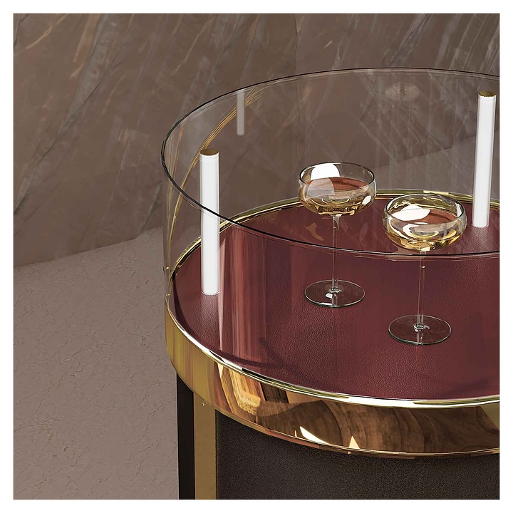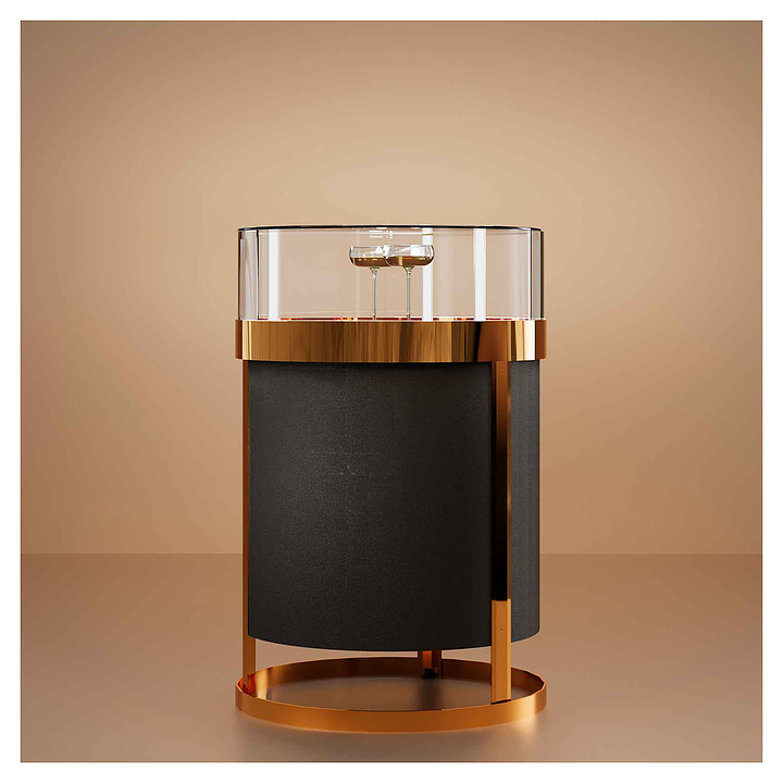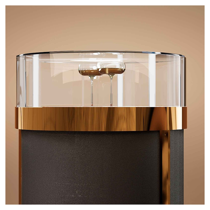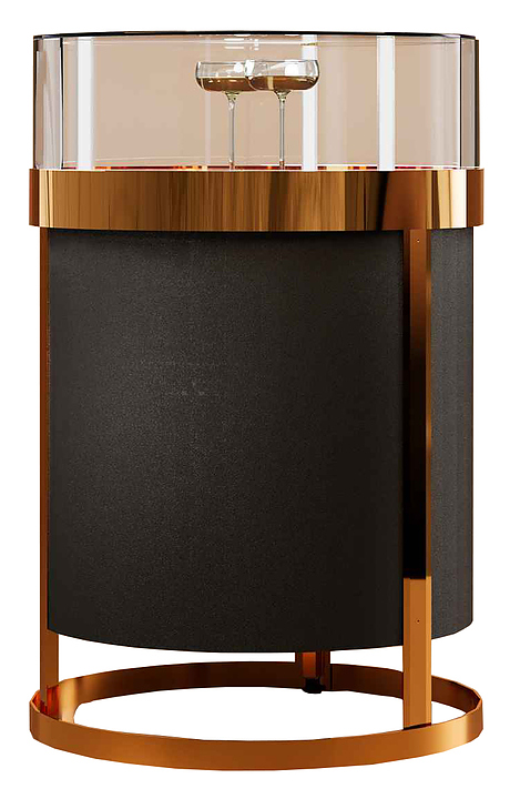 Напольная радиусная витрина Finist UNIQUE UN/800 предназначена для демонстрации десертов и кондитерских изделий. Модель оснащена светодиодной подсветкой и механизмом, поднимающим поддон витрины со стеклянным куполом вверх, благодаря чему создается уникальное шоу-презентация продукта внутри. Декоративные элементы выполнены из нержавеющей стали, покрытой нитридом титана и черным муаром, поддон - из экокожи, моллированный купол - из просветленного стекла. Особенности: