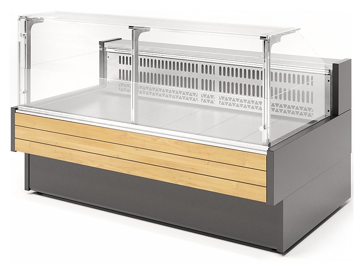 Холодильная витрина Lida K-2 U (2000х1100х1250 мм) используется на предприятиях общественного питания и торговли для кратковременного хранения и предпродажной демонстрации охлажденного мяса и рыбы, полуфабрикатов и других гастрономических товаров. Модель оснащена электронным блоком управления, откидным фронтальным прямым стеклом, верхней предметной полкой и светодиодной подсветкой. Каркас выполнен из трубы квадратного сечения, рабочая поверхность продавца, полки для выкладки товара и внутренние поверхности - из нержавеющей стали, теплоизоляция - из пенополиуритана высокой плотности, ночные шторки - из оргстекла. Холодильный агрегат в комплект поставки не входит и приобретается отдельно. Особенности: