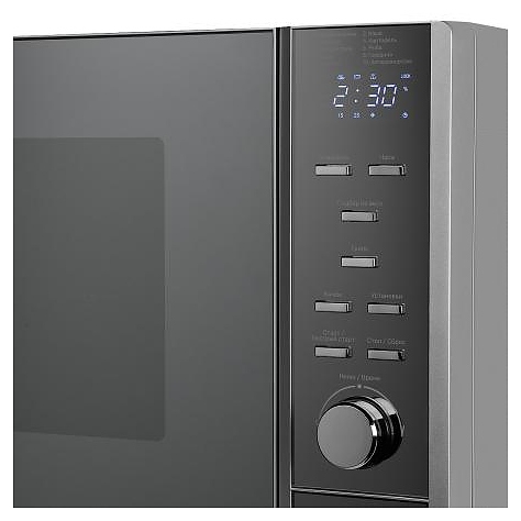 Микроволновая печь Kuppersberg TMW 20 MG предназначена для приготовления пищи, подогрева готовых блюд и ингридиентов, а также размораживания полуфабрикатов в гостиницах, офисах и домашних условиях. Модель оснащена камерой с верхним грилем, левосторонней распашной дрерью со смотровым окном, кабелем питания с вилкой, расположенной с правой стороны фронта электромеханической панелью управления с поворотным переключателем, функциональными кнопками и цифровым дисплеем с белой подсветкой индикации. Корпус выполнен из высококачественной стали с антикоррозийным покрытием оттенка графит, дверь с полным фронтальным остеклением, поворотный стол – из ударопрочного стекла, панель управления – из серого пластика, фурнитура серебристого оттенка. В комплект поставки входят поворотный стол, высокая решетка для гриля, инструкция по эксплуатации и гарантийный талон. Особенности: