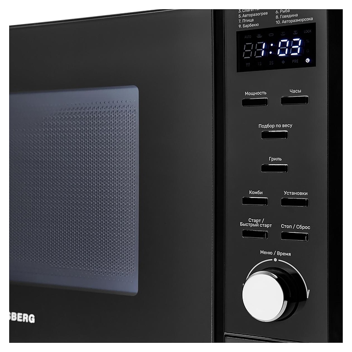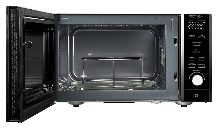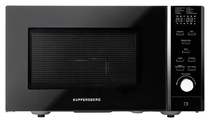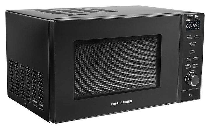 Микроволновая печь Kuppersberg TMW 230 B предназначена для приготовления пищи, подогрева готовых блюд и ингридиентов, а также размораживания полуфабрикатов в гостиницах, офисах и домашних условиях. Модель оснащена камерой с верхним грилем, левосторонней распашной дрерью со смотровым окном, кабелем питания с вилкой, расположенной с правой стороны фронта электромеханической панелью управления с поворотным переключателем, функциональными кнопками и цифровым дисплеем с белой подсветкой индикации. Корпус выполнен из высококачественной стали с антикоррозийным покрытием черного цвета, дверь с полным фронтальным остеклением, поворотный стол – из ударопрочного стекла, панель управления – из черного пластика, фурнитура в комбинации черного и серебристого тонов. В комплект поставки входят поворотный стол, высокая решетка для гриля, инструкция по эксплуатации и гарантийный талон. Особенности: