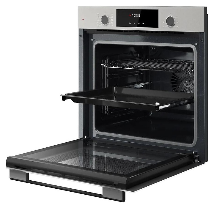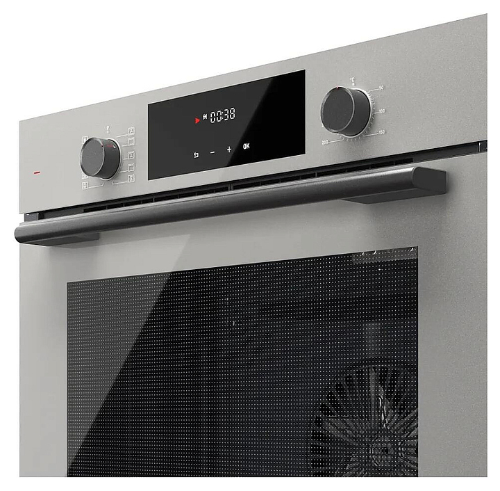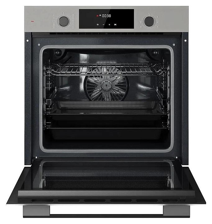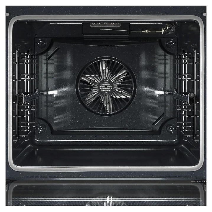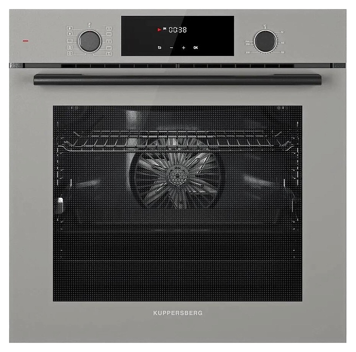 Электрический духовой шкаф Kuppersberg HF 609 W предназначен для приготовления большого ассортимента блюд в домашних условиях. Модель оснащена камерой с расположенными в задней стенке вентилятором и кольцевым нагревательным элементом, верхним и нижним нагревательными элементами, верхним грилем, 2 боковыми стойками с 5 уровнями направляющих для противней, откидной дверью со смотровым окном и уплощенной горизонтальной рукояткой, кабелем питания, электромеханической панелью управления с 2 цилиндрическими поворотными переключателями, функциональными сенсорными клавишами и светодиодными дисплеем с белой подсветкой индикации. Корпус выполнен из высококачественной стали, фронтальные панели с сатинированной поверхностью оттенка графит, боковые стойки, направляющие и решетка для гриля с хромированным покрытием, противни – из металла с эмалированным покрытием. В комплект поставки входят решетка для гриля, 2 противня: стандартный и глубокий, инструкция по эксплуатации и гарантийный талон. Особенности: