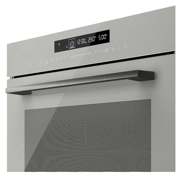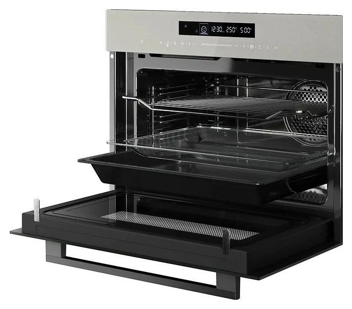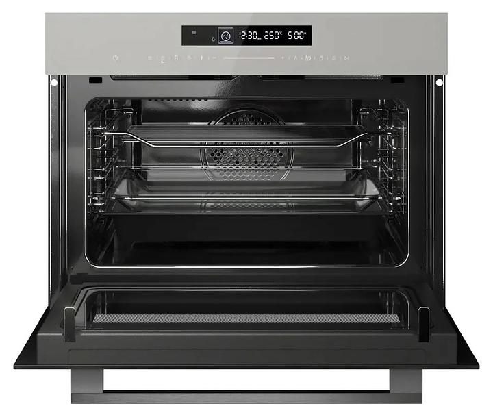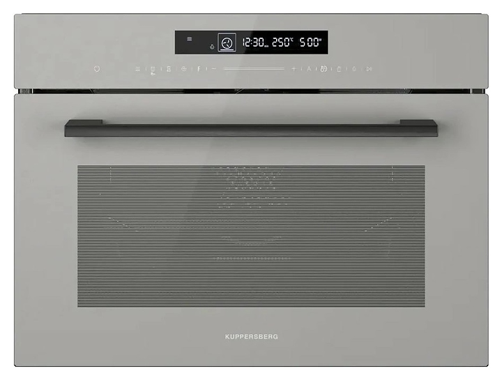 Электрический духовой шкаф Kuppersberg KMW 694 GRпредназначен для приготовления большого ассортимента блюд в домашних условиях. Модель оснащена камерой с расположенными в задней стенке вентилятором и кольцевым нагревательным элементом, верхним и нижним нагревательными элементами, верхним грилем, магнетроном, 2 боковыми стойками с 5 уровнями направляющих для противней, откидной дверью со смотровым окном и уплощенной горизонтальной рукояткой, кабелем питания, панелью управления с сенсорной клавиатурой и светодиодным дисплеем с белой подсветкой индикации. Корпус выполнен из высококачественной стали, верхняя панель и дверь серого цвета с полным фронтальным остеклением из закаленного стекла без винтового крепежа, боковые стойки, направляющие и решетка для гриля с хромированным покрытием, глубокий противень – из металла с эмалированным покрытием, противень для микроволн – из стекла, рукоятка с матовой поверхностью оттенка темный графит.