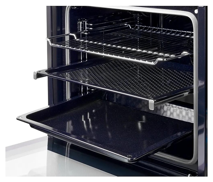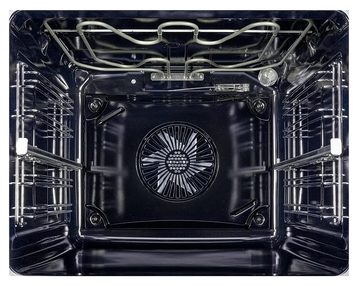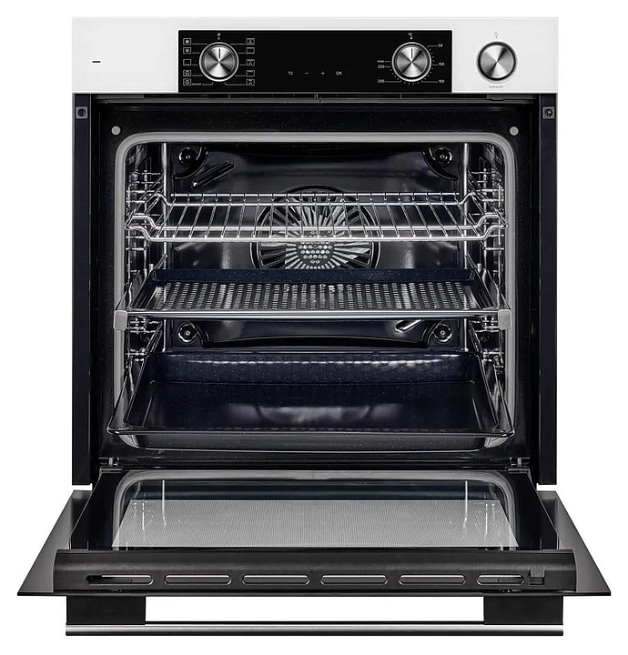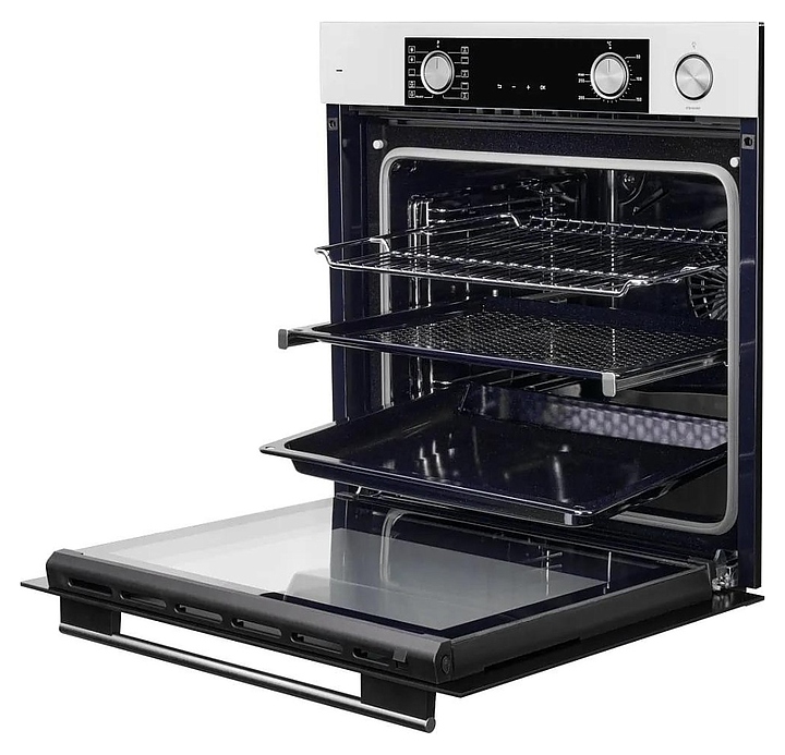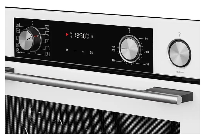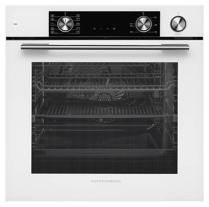 Электрический духовой шкаф Kuppersberg KSO 610 W предназначен для приготовления большого ассортимента блюд в домашних условиях. Модель оснащена камерой с расположенными в задней стенке вентилятором и кольцевым нагревательным элементом, верхним и нижним нагревательными элементами, верхним грилем, 2 боковыми стойками с 5 уровнями направляющих для противней, откидной дверью со смотровым окном и уплощенной горизонтальной рукояткой, кабелем питания, электромеханической панелью управления с 2 цилиндрическими поворотными переключателями, функциональными сенсорными клавишами и светодиодным дисплеем с белой подсветкой индикации. Корпус выполнен из высококачественной стали, верхняя панель и дверь белого цвета с полным фронтальным остеклением без винтового крепежа, боковые стойки, направляющие и решетка для гриля с хромированным покрытием, противни – из металла с эмалированным покрытием, фурнитура с серебристой поверхностью. В комплект поставки входят картридж для пароувлажнения, решетка для гриля, 2 противня: перфорированный FryArt и глубокий, инструкция по эксплуатации и гарантийный талон. Особенности: