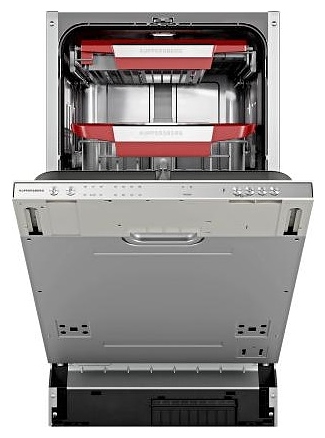 Посудомоечная машина Kuppersberg GIM 4592предназначена для гигиенической обработки и последующей сушки различной посуды на предприятиях общественного питания, в гостиничных комплексах и домашних условиях. Модель оснащена камерой с откидной дверью, верхним и нижним моечными рукавами, дозаторами моющих и ополаскивающих средств, устройством умягчения воды, кабелем питания с вилкой, расположенной на верхнем торце двери кнопочной панелью управления с сигнальными лампами и цифровым дисплеем с белой подсветкой индикации. Внутренняя облицовка камеры выполнена из высококачественной нержавеющей стали, панель управления – из пластика серебристого оттенка.