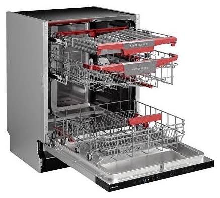 Посудомоечная машина Kuppersberg GLM 6081предназначена для гигиенической обработки и последующей сушки различной посуды на предприятиях общественного питания, в гостиничных комплексах и домашних условиях. Модель оснащена камерой с откидной дверью, верхним и нижним моечными рукавами, дозаторами моющих и ополаскивающих средств, устройством умягчения воды, кабелем питания с вилкой, расположенной на верхнем торце двери кнопочной панелью управления с сигнальными лампами и цифровым дисплеем с белой подсветкой индикации. Внутренняя облицовка камеры выполнена из высококачественной нержавеющей стали, панель управления – из пластика черного цвета, цоколь и верхняя часть фронта черного цвета.