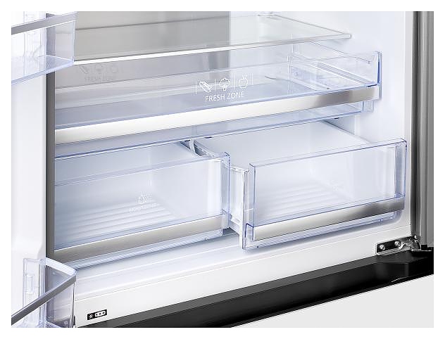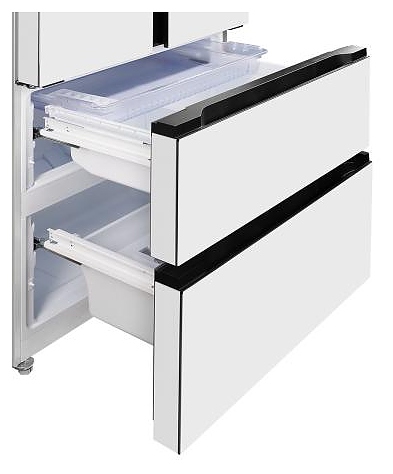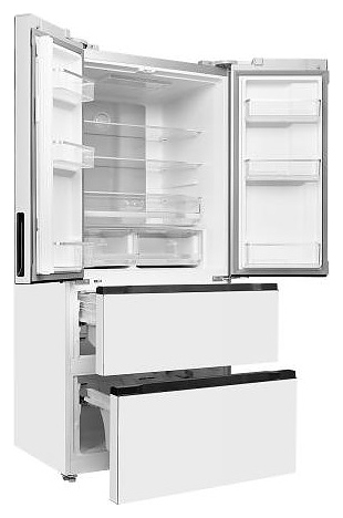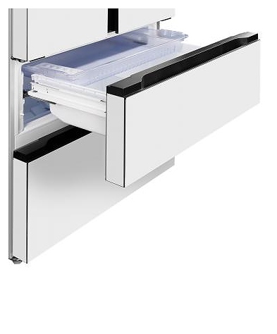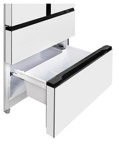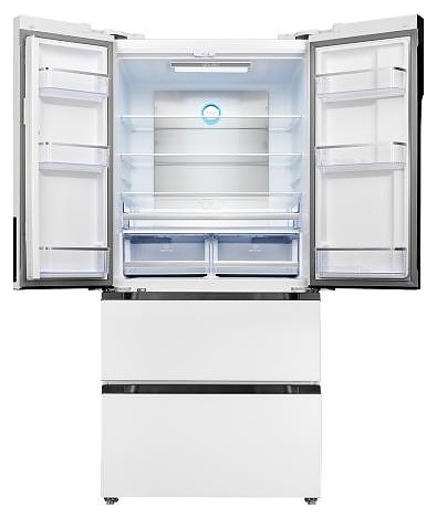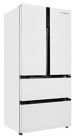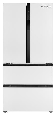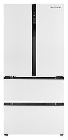 Холодильник Kuppersberg RFFI 184 WG предназначен для охлаждения, замораживания, кратковременного и длительного хранения пищевых продуктов и напитков в гостиничных комплексах, офисах, а также домашних условиях. Модель оснащена холодильной камерой сверху с 2 распашными дверьми с интегрированными рукоятками, морозильной камерой снизу с 2 выдвижными дверьми типа French Door, механическим льдогенератором, кабелем питания с вилкой, сенсорной панелью управления и светодиодным цифровым дисплеем с белой подсветкой индикации. Корпус выполнен из металла с антикоррозийным покрытием цвета белый жемчуг, фасад с полным фронтальным остеклением без винтового крепежа, внутренняя облицовка камер – из антибактериального пластика, плоские полки – из закаленного стекла, ящики – из белого пластика с прозрачным фронтом, навесные полки – из прозрачного пластика, ящики и полки декорированы окантовками серебристого оттенка. Комплектация: