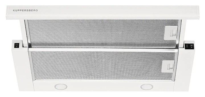 Встраиваемая кухонная вытяжка Kuppersberg SLIMTURBO 60 GW предназначена для очистки воздуха от продуктов горения, копоти и запахов в процессе приготовления пищи путем принудительной вентиляции в домашних условиях. Модель оснащена вентилятором с электродвигателем, 2 круглыми светодиодными светильниками и электромеханическим управлением с 3 переключателями колыбельного типа. Корпус выполнен из высококачественной стали с термостойким покрытием наружной части эмалью белого цвета, фасад выдвижной панели – из белого стекла, фильтр – из алюминия. В комплект поставки входят набор монтажных креплений, антивозвратный клапан, инструкция по эксплуатации и гарантийный талон. Особенности: