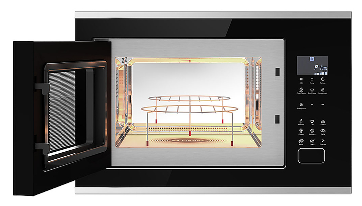 Микроволновая печь Libhof MWX-7525BS предназначена для приготовления пищи, подогрева готовых блюд и ингредиентов, а также размораживания полуфабрикатов в частных домах, квартирах, отелях и офисах. Модель оснащена сенсорным управлением, цифровым дисплеем и увеличенным пространством внутри рабочей камеры, которое позволяет готовить большие порции пищи за один раз. Отсутствие поворотного стола упрощает уход, обеспечивает равномерное распределение микроволн и сокращает время приготовления. Внутренняя поверхность изделия выполнена из нержавеющей стали, передняя панель - из жаропрочного стекла с металлическими элементами. В комплект поставки входят ножки, подставка для гриля и установочный комплект. Особенности: