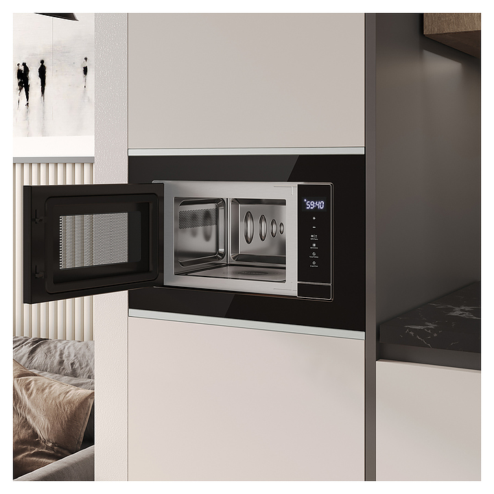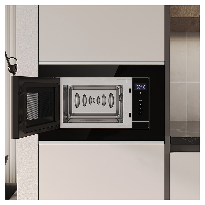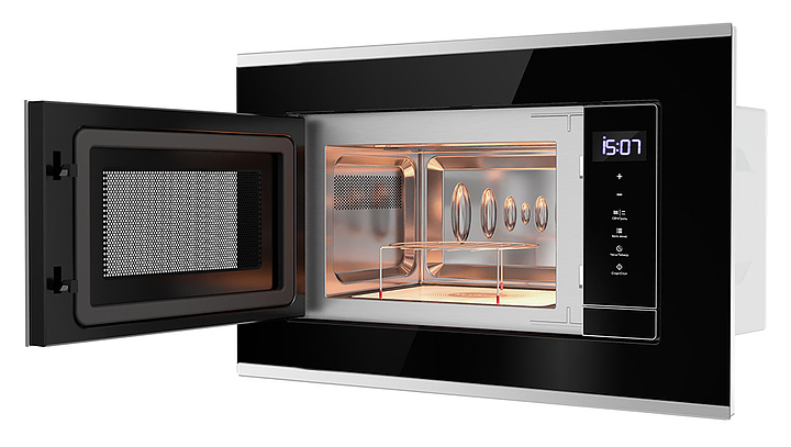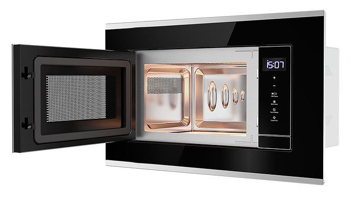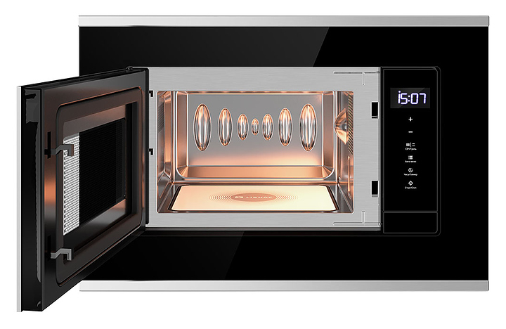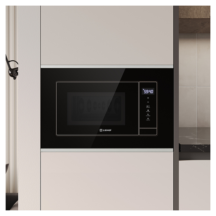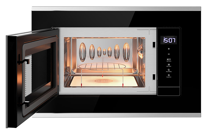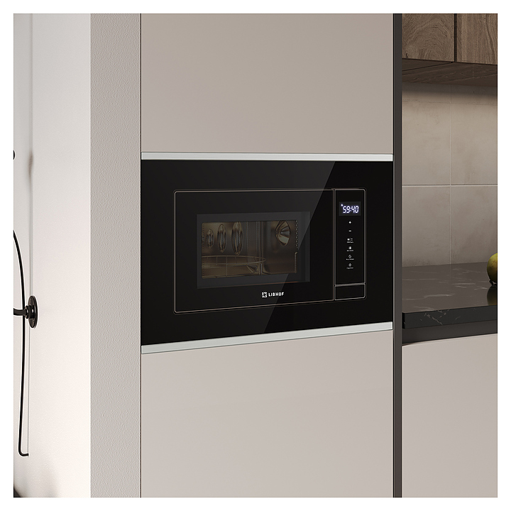 Микроволновая печь Libhof MWX-7320BS предназначена для приготовления пищи, подогрева готовых блюд и ингредиентов, а также размораживания полуфабрикатов в частных домах, квартирах, отелях и офисах. Модель оснащена сенсорным управлением, цифровым дисплеем и увеличенным пространством внутри рабочей камеры, которое позволяет готовить большие порции пищи за один раз. Отсутствие поворотного стола упрощает уход, обеспечивает равномерное распределение микроволн и сокращает время приготовления. Внутренняя поверхность изделия выполнена из нержавеющей стали, передняя панель - из жаропрочного стекла с металлическими элементами. В комплект поставки входят ножки, подставка для гриля и установочный комплект. Особенности: