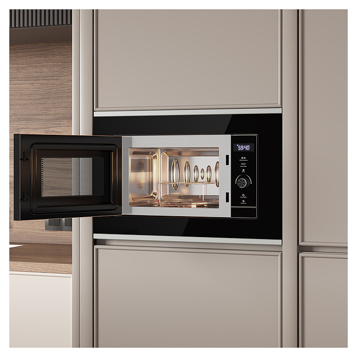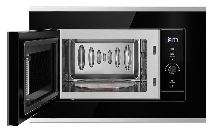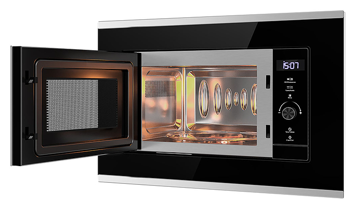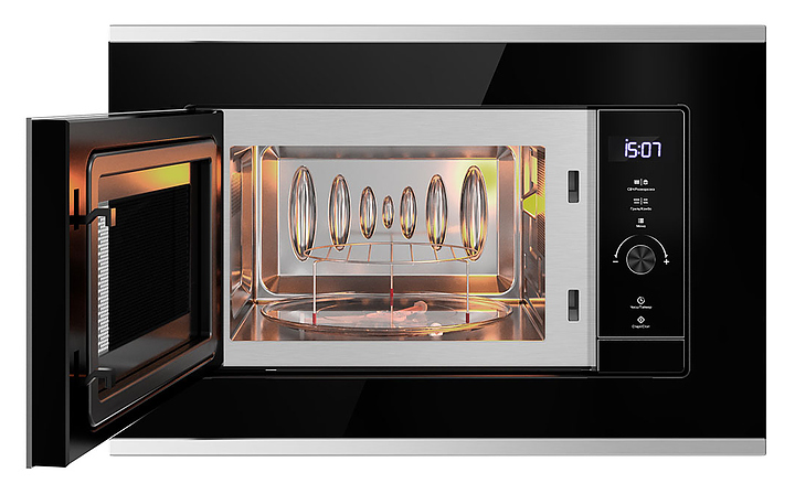 Микроволновая печь Libhof MWB-5220BS предназначена для приготовления пищи, подогрева готовых блюд и ингредиентов, а также размораживания полуфабрикатов в частных домах, квартирах, отелях и офисах. Модель оснащена сенсорным управлением, цифровым дисплеем и вместительной камере, которая позволяет готовить и разогревать большие порции пищи. Внутренняя поверхность изделия выполнена из нержавеющей стали, передняя панель - из жаропрочного стекла с металлическими элементами, тарелка - из боросиликатного стекла. В комплект поставки входят ножки, подставка для гриля, вращающаяся тарелка и установочный комплект. Особенности: