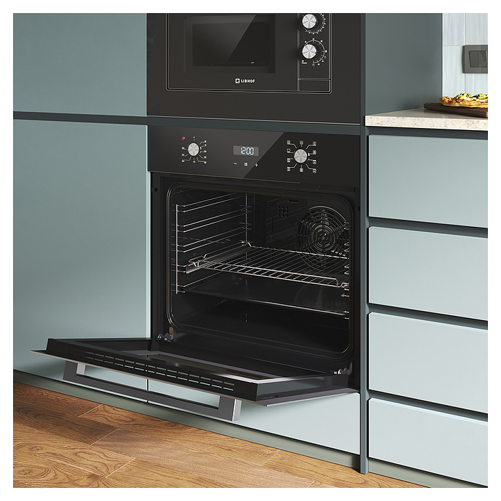 Духовой шкаф Libhof DSN-7091B используется в частных домах и квартирах для выпечки пиццы, пирогов, кексов, маффинов, печенья, приготовления запеканок, гриля и других блюд. Модель оснащена дисплеем, цифровым таймером и встроенной подсветкой. Дверца оборудована двойным стеклом для надежной теплоизоляции и защиты от ожогов. Телескопические направляющие гарантируют легкое и безопасное извлечение готовых блюд. Внутренняя часть покрыта эмалью, которая обеспечивает легкую очистку и устойчивость к высоким температурам. В комплект поставки входят решетка, поддон для жидкости и вертел для гриля. Особенности: