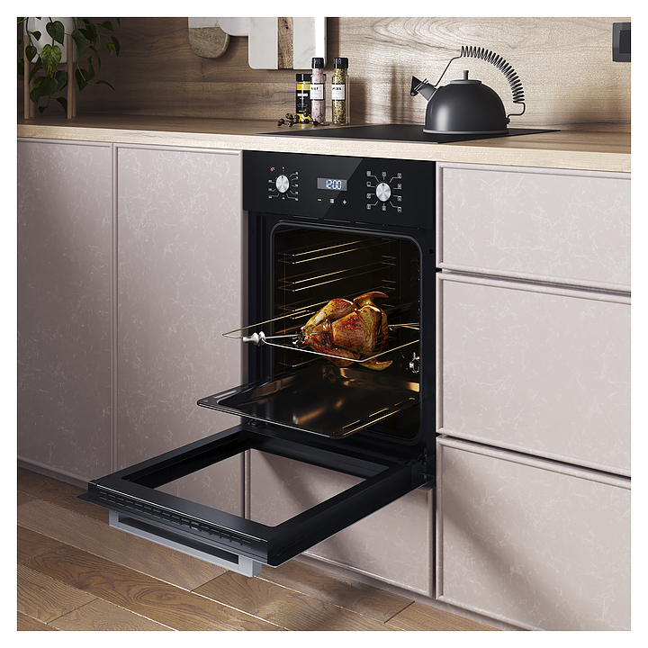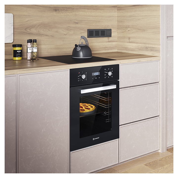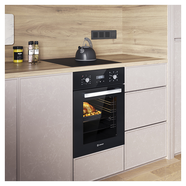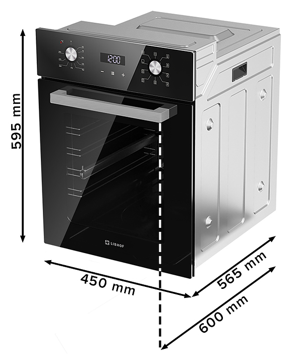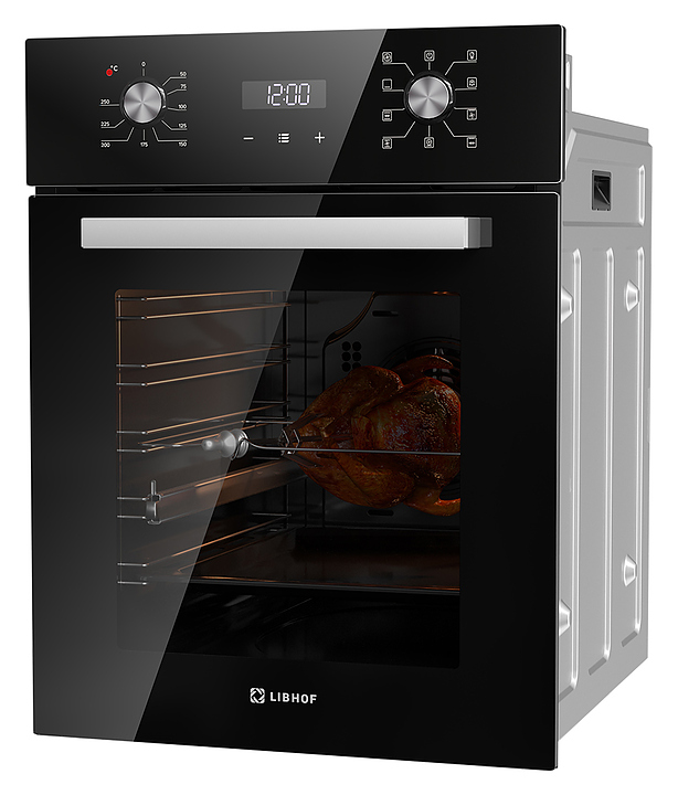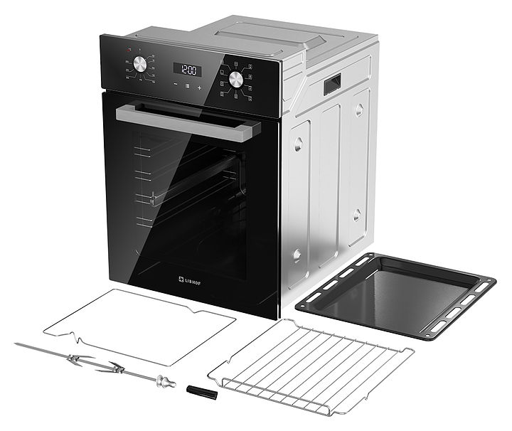 Духовой шкаф Libhof DSN-5091B используется в частных домах и квартирах для выпечки пиццы, пирогов, кексов, маффинов, печенья, приготовления запеканок, гриля и других блюд. Модель оснащена дисплеем, цифровым таймером и встроенной подсветкой. Дверца оборудована тройным стеклом для надежной теплоизоляции и защиты от ожогов. Телескопические направляющие гарантируют легкое и безопасное извлечение готовых блюд. Внутренняя часть покрыта эмалью, которая обеспечивает легкую очистку и устойчивость к высоким температурам. В комплект поставки входят решетка, противень и вертел для гриля. Особенности:
