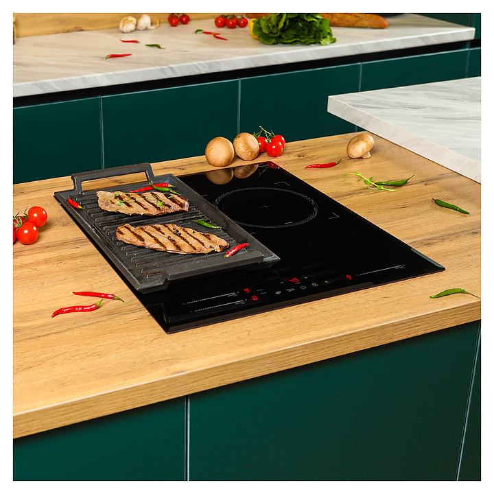 Варочная панель Libhof CH-62453I используется в квартирах и частных домах для приготовления или разогрева широкого спектра блюд в наплитной посуде. Модель оснащена 3 зонами нагрева, системой обнаружения посуды и индикатором остаточного тепла. Функция Flexi Zone позволяет объединить конфорки для адаптации рабочей поверхности под различные типы посуды. Рабочая поверхность панели выполнена из стеклокерамики, которая отличается устойчивостью к царапинам и высоким температурам. В комплект поставки входит скребок. Особенности: