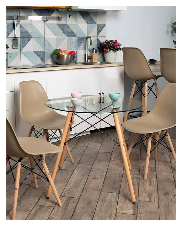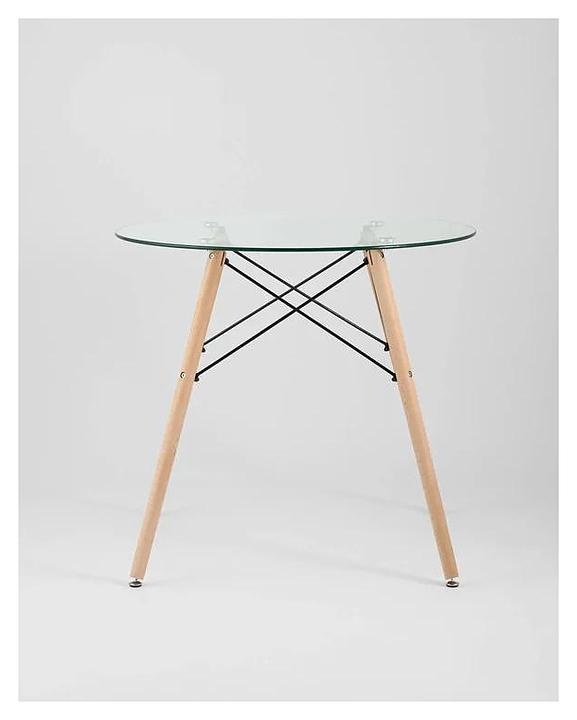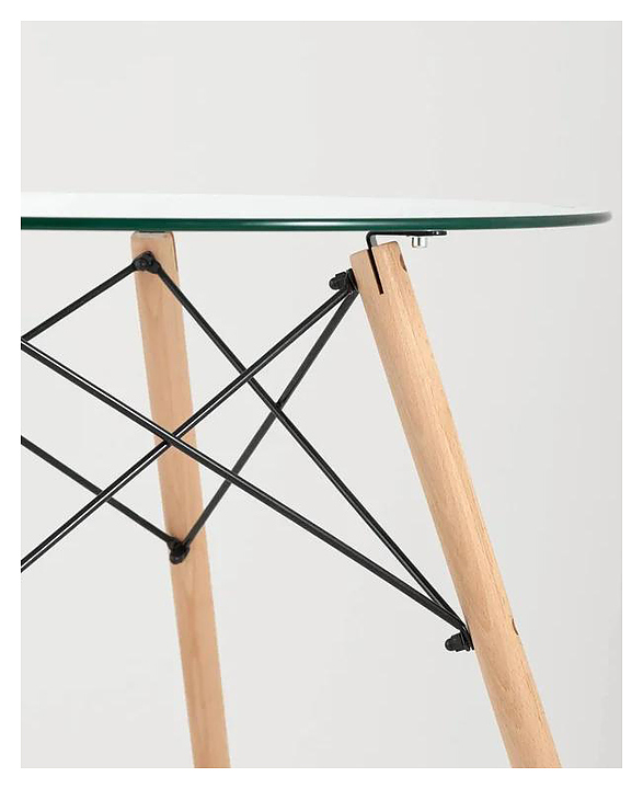 Cтол Stool Group Eames DSW NEW предназначен для использования в гостиной, на кухне, даче, в ресторане или кафе. Столешница круглой формы выполнена из прочного закаленного стекла, ножки - из массива бука и металла. Дополнительные характеристики: