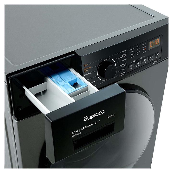 Стиральная машина Бирюса WMD-SM812/03 M предназначена для стирки текстильных изделий с применением синтетических моющих средств низкого пенообразования, а также для полоскания, отжима и сушки текстильных изделий в бытовых условиях. Модель оснащена сушкой, фронтальной загрузкой, LED дисплеем и инверторным мотором. Программы: