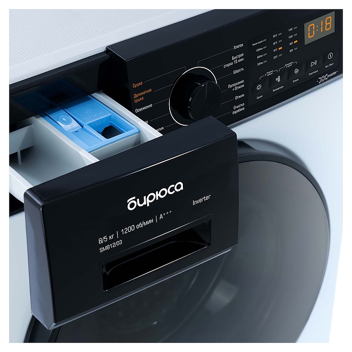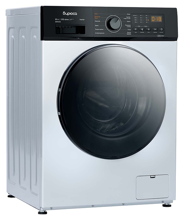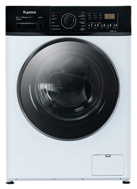 Стиральная машина Бирюса WMD-SM812/03 предназначена для стирки текстильных изделий с применением синтетических моющих средств низкого пенообразования, а также для полоскания, отжима и сушки текстильных изделий в бытовых условиях. Модель оснащена сушкой, фронтальной загрузкой, LED дисплеем и инверторным мотором. Программы: