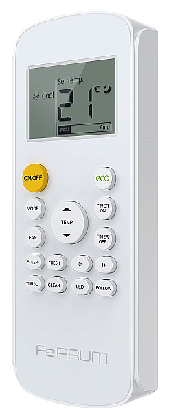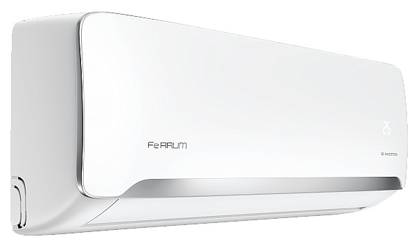 Настенная сплит-система Ferrum iFIS18F2С / iFOS18F2Ссерии FORCE FULL DC Inverter используется для создания максимально кофмортных условий микроклимата в жилых, вдминистративных и коммерческих помещениях. Модель состоит из внутреннего блока iFIS18F2С и наружного блока iFOS18F2С. Наружный блок оснащен 3-лопастным вентилятором, защитными решеткой и крышкой для сервисных вентилей, внутренний блок – воздухозаборной решеткой, откидной лицевой панелью, подвижными горизонтальной заслонкой и вертикальными жалюзи, электронным блоком управления и светодиодным дисплеем скрытого типа с проецируемой на фронтальную панель индикацией, пульт – кнопочной клавиатурой и информативным жидкокристаллическим дисплеем с фоновой подсветкой. Облицовка внутреннего блока выполнена из пластика с поверхностью белого цвета и декоративной окантовкой лицевой панели серебристого оттенка, корпус пульта – из ударопрочного белого пластика, корпус наружного блока – из стали с антикоррозийным покрытием белого цвета, теплообменники с гидрофобным антикоррозийным покрытием Golden Fin.