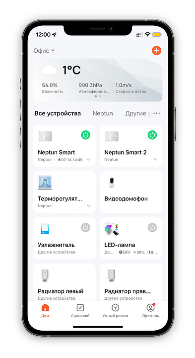 • Поддержка радиодатчиков для организации соединения с датчиками Neptun Smart 868