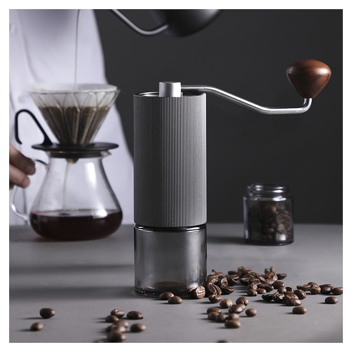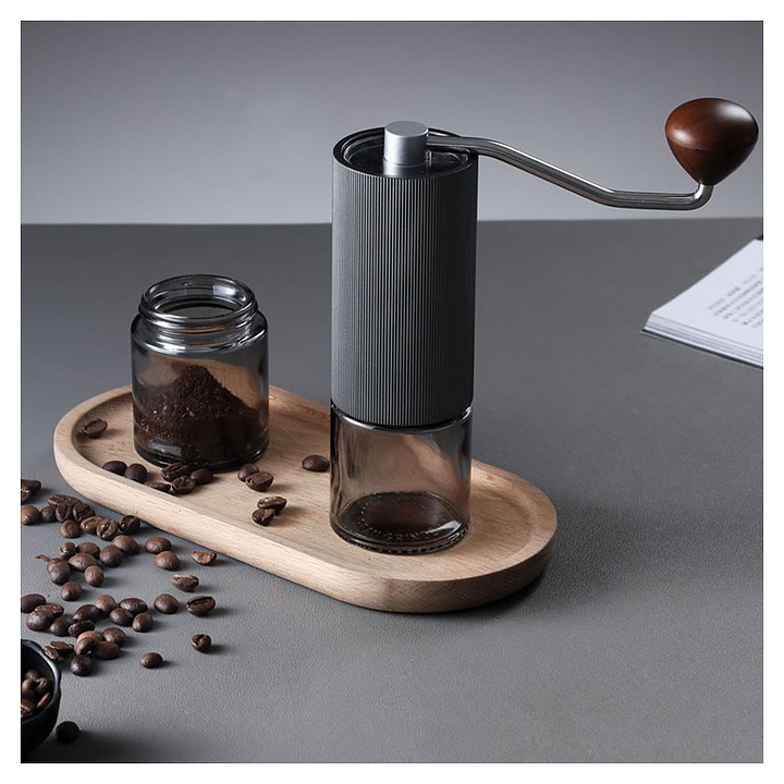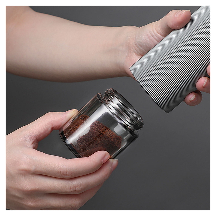 Механическая кофемолка ZeroHero S02 используется в офисах, гостиницах и домашних усдлвиях для приготовления молотого кофе из зерен для альтернативных способов заваривания – турка, гейзерная кофеварка, аэропресс, пуровер, капельная кофеварка, френч-пресс. Модель оснащена удобной изогнутой рукояткой с массивным наконечником. Корпус цилиндрической формы выполнен из алюминиевого сплава с покрытием серого оттенка, контейнер для молотого кофе – из стекла, наконечник рукоятки – из массива двевесины, жернова – из нержавеющей стали, упаковка – картонная коробка.