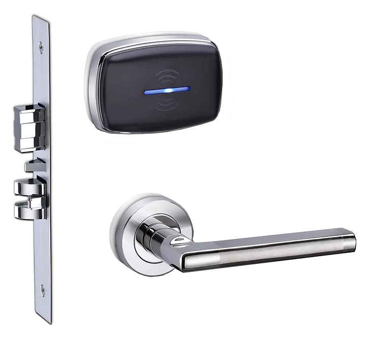 Электронный замок iLOCKS IS100-S nev предназначен для установки в номерных фондах, в служебных помещениях в гостиницах, отелях и офисах. Изделие легко вписывается в интерьер любого отеля, вне зависимости от его дизайна. Модель оснащена считывателем карт RFID и транспондером. Корпус замка и врезной механизм изготовлены из нержавеющей стали AISI 304. Особенности:
