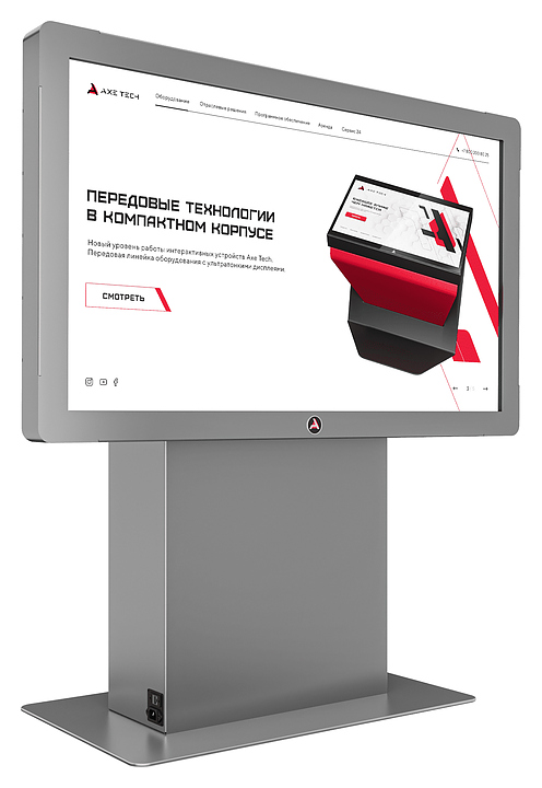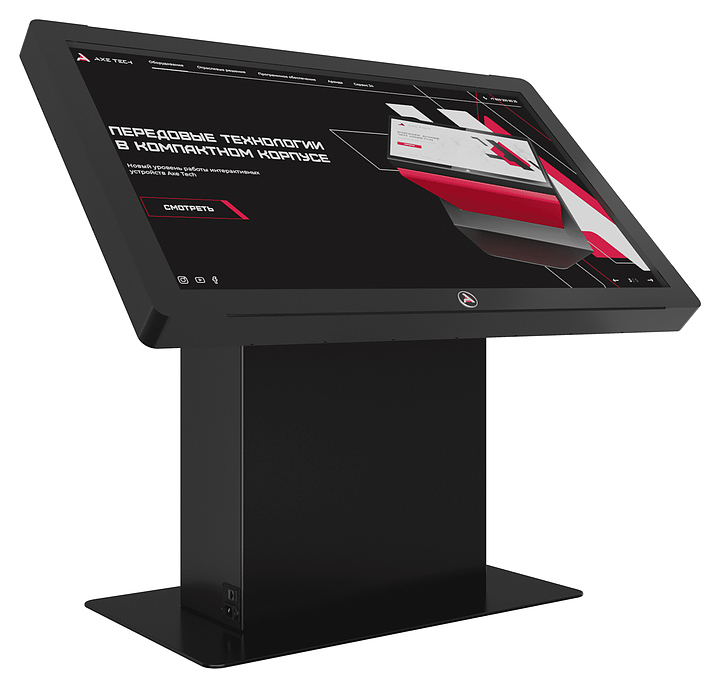 Интерактивный стол AxeTech Rise Medium используется для отображения информации посетителям. Модель оснащена инфракрасной сенсорной рамкой на 20 одновременных касаний, Wi-Fi адаптером и встроенной аудиосистемой. Электрорегулировка угла наклона и высоты дисплея гарантирует комфортное взаимодействие даже при длительном использовании. Корпус выполнен из стали. Особенности: