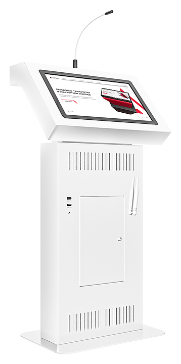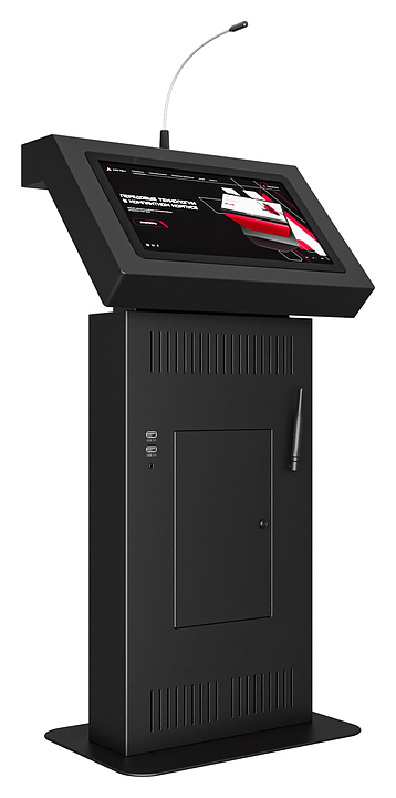 Интерактивная трибуна AxeTech Voice Medium используется для выступления на большую аудиторию при проведении лекций, бизнес-форумов и конференций. Модель оснащена сенсором с проекционно-емкостной технологией на 10 одновременных касаний, встроенным микрофоном и внешними разъемами. Трибуна позволяет работать с любыми приложениями, текстовыми, аудио- и видеофайлами, а также создавать пометки на мониторе устройства для демонстрации на большом экране. Корпус выполнен из стали. Особенности: