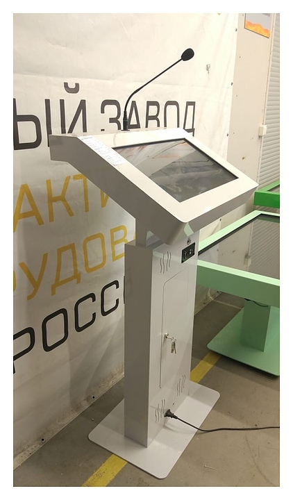 Интерактивная трибуна AxeTech Voice Premium используется для выступления на большую аудиторию при проведении лекций, бизнес-форумов и конференций. Модель оснащена сенсором с проекционно-емкостной технологией на 10 одновременных касаний, встроенным микрофоном и внешними разъемами. Трибуна позволяет работать с любыми приложениями, текстовыми, аудио- и видеофайлами, а также создавать пометки на мониторе устройства для демонстрации на большом экране. Корпус выполнен из стали. Особенности:
