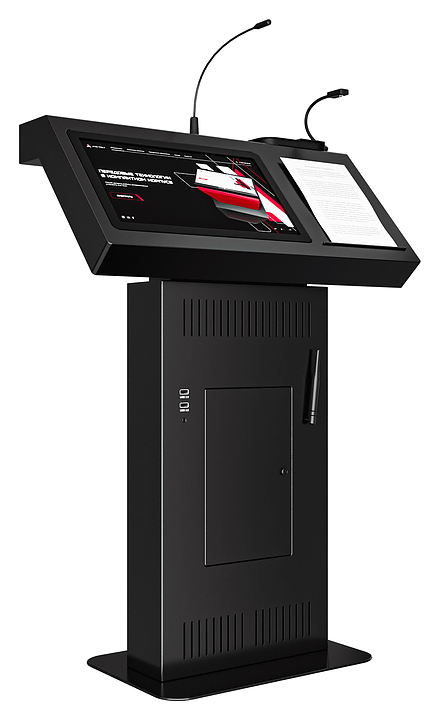 Интерактивная трибуна AxeTech Voice Pro Start используется для выступления на большую аудиторию при проведении лекций, бизнес-форумов и конференций. Модель оснащена местом для размещения документов, сенсором с проекционно-емкостной технологией на 10 одновременных касаний, встроенным микрофоном и внешними разъемами, а также документ-камерой для отображения необходимых документов на большом экране. Антивандальный корпус выполнен из стали. Особенности: