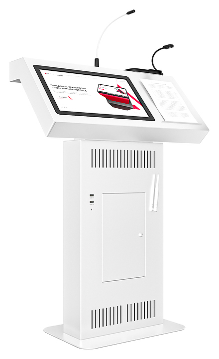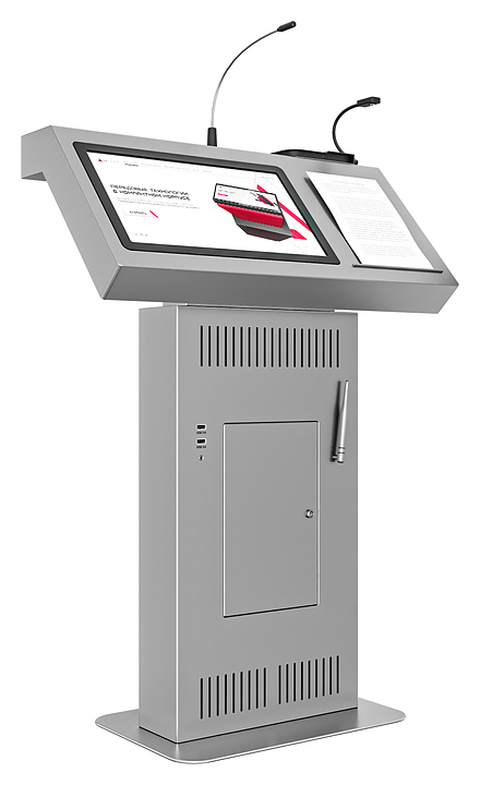 Интерактивная трибуна AxeTech Voice Pro Medium используется для выступления на большую аудиторию при проведении лекций, бизнес-форумов и конференций. Модель оснащена местом для размещения документов, сенсором с проекционно-емкостной технологией на 10 одновременных касаний, встроенным микрофоном и внешними разъемами, а также документ-камерой для отображения необходимых документов на большом экране. Антивандальный корпус выполнен из стали. Особенности: