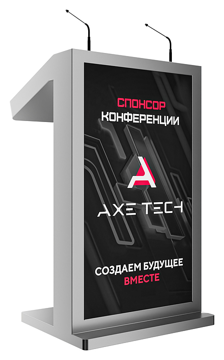 Интерактивная трибуна AxeTech Double Premium используется на конференциях, выставках, спортивных или других мероприятиях, где требуется визуальная поддержка презентаций и общение с аудиторией. Модель оснащена сенсором с проекционно-емкостной технологией на 10 одновременных касаний, мощным встроенным микрофоном и внешними разъемами для подключения дополнительной техники. Большой внешний дисплей трибуны отображает презентационный материал, эффектно демонстрирует рекламную информацию о компании, спикере, предлагаемых товарах и услугах. Корпус выполнен из стали. Особенности: