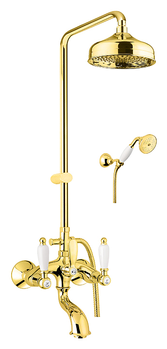 Душевая система Fiore Coloniale 02OO0615 предназначена для использования в ванных помещениях для подачи горячей и холодной воды. Модель оснащена изливом для нополнения ванны, круглым верхним тропическим душем, круглым однорежимным ручным душем, душевым шлангом с защитой от перекручивания, девиатором, керамической кран-буксой, обеспечивающей плавный ход вентилей и бесшумное смешивание воды, а также аэратором для создания мягкой ровной струи без разбрызгивания. Изделие выполнено из латуни, отличающейся прочностью, долговечностью и устойчивостью к перепадам температур, шланг - из металла. В комплект поставки входят верхний душ, душевая штанга, держатель душевой лейки, ручной душ, смеситель, шланг. Особенности: