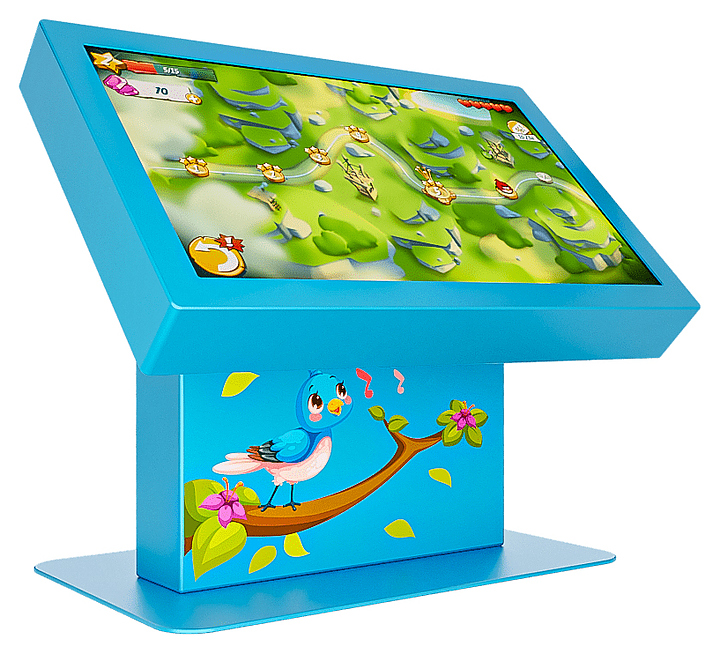 Сенсорный стол AxeTech Fancy Kid Start используется для отображения информации в детских садах и школах. Модель оснащена инфракрасной сенсорной рамкой на 10 одновременных касаний, Wi-Fi адаптером и встроенной аудиосистемой. Механическая регулировка угла наклона дисплея гарантирует комфортное взаимодействие. Корпус выполнен из стали. Особенности: