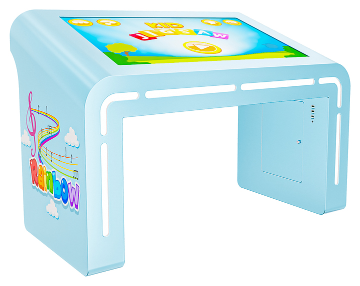 Сенсорный стол AxeTech Leo Start используется для отображения информации в детских садах и школах. Модель оснащена инфракрасной рамкой на 10 одновременных касаний, Wi-Fi адаптером и встроенной аудиосистемой. Закругленные углы гарантируют безопасность, яркий дизайн и светодиодная подсветка привлекают внимание ребенка и вызывают интерес к обучению. Корпус выполнен из стали. Особенности: