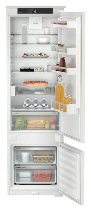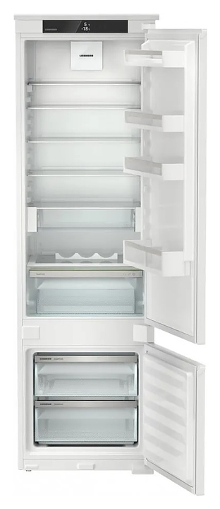 Встраиваемый холодильник Liebherr ICSd 5102 серии Pure предназначен для охлаждения, замораживания, кратковременного и длительного хранения пищевых продуктов и напитков в гостиничных комплексах, офисах, а также домашних условиях. Модель оснащена холодильной камерой сверху и морозильной камерой снизу, правосторонними перенавешиваемыми распашными дверьми, кабелем питания с евровилкой, расположенными за дверью холодильной камеры в верхней части фронта сенсорной панелью управления и монохромным жидкокристаллическим дисплеем с белой подсветкой индикации. Боковины и двери выполнены из стали, внутренняя облицовка камер – из белого пластика, плоские полки – из прозрачного закаленного стекла, ящики и навесные полки – из белого пластика с прозрачным фронтом, ящики и полки декорированы окантовками серебристого оттенка, упаковка – из гофрокартона, полимерной пленки и полистирола.