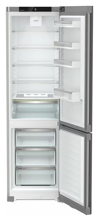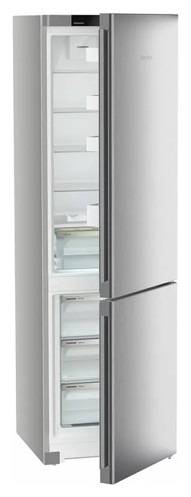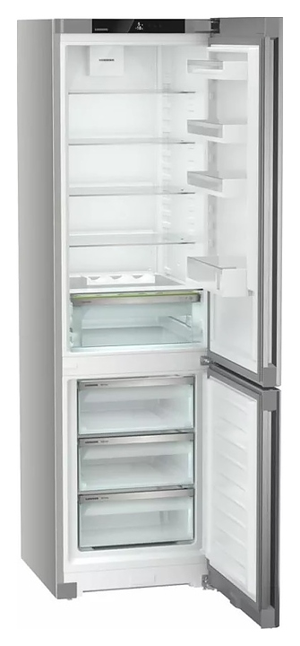 Холодильник Liebherr CNsfd 5703серии Pure предназначен для охлаждения, замораживания, кратковременного и длительного хранения пищевых продуктов и напитков в гостиничных комплексах, офисах, а также домашних условиях. Модель оснащена холодильной камерой сверху и морозильной камерой снизу, правосторонними перенавешиваемыми распашными дверьми, кабелем питания с евровилкой, расположенными за дверью холодильной камеры в верхней части фронта сенсорной панелью управления и монохромным жидкокристаллическим дисплеем с белой подсветкой индикации. Боковины выполнены из стали с лакированным покрытием серебристого оттенка, двери – из материала Colaminat с вертикальным крацеванием поверхности и покрытием SteelFinish под нержавеющую сталь серебристого оттенка, внутренняя облицовка камер – из белого пластика, плоские полки – из прозрачного закаленного стекла, навесные полки и ящики – из белого пластика с прозрачным фронтом, ящики и полки декорированы окантовками серебристого оттенка, упаковка – из гофрокартона, полимерной пленки и полистирола.