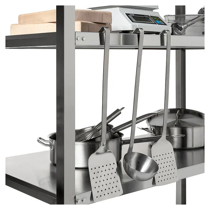 Кухонный стеллаж Кобор СКТР-120/70 предназначен для хранения посуды, различного инвентаря и сухих продуктов на предприятиях общественного питания и торговли. Модель оснащена регулируемыми по высоте ножками с опорами, которые не подвержены коррозии. Разборный каркас нержавеющая сталь, труба 40х40, полки - из нержавеющей стали AISI 430. Внимание! На фото аналогичная модель другого размера. Видео