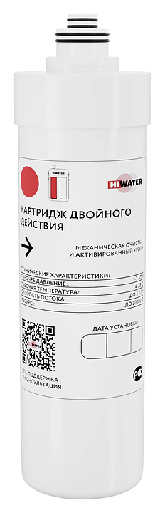 Картридж двойного действия HiWater V2 используется совместно с системами NANO LITE, RO 400 LITE и RO-800 LITE для очистки воды от механических и коллоидных частиц, органических примесей, бактерий и вирусов, а также глубокого обессоливания воды на предприятиях общественного питания и торговли. Изделие состоит из высококачественного полипропилена и гранулированного активированного угля. Картриджи двойного действия HIWATER V2 не совместимы с фильтрационными системами выпущенными до октября 2024 года. Особенности: