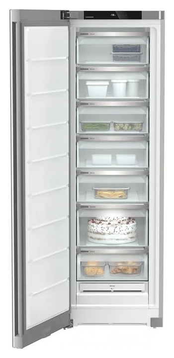 Морозильник Liebherr SFNsfd 5227 серии Plus предназначен для охлаждения, замораживания, кратковременного и длительного хранения пищевых продуктов и напитков в гостиничных комплексах, офисах, а также домашних условиях. Модель оснащена морозильной камерой с левосторонней перенавешиваемой распашной дверью, кабелем питания с евровилкой, расположенными за дверью в верхней части фронта сенсорной панелью управления и монохромным жидкокристаллическим дисплеем с белой подсветкой индикации. Боковины выполнены из стали с лакированным покрытием серебристого оттенка, двери – из материала Colaminat с вертикальным крацеванием поверхности и покрытием SteelFinish под нержавеющую сталь серебристого оттенка, внутренняя облицовка камеры – из белого пластика, ящики – из белого пластика с прозрачным фронтом и окантовками серебристого оттенка, упаковка – из гофрокартона, полимерной пленки и полистирола.