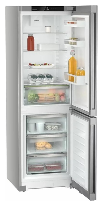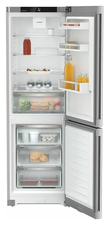 Холодильник Liebherr CNsff 5203серии Pure предназначен для охлаждения, замораживания, кратковременного и длительного хранения пищевых продуктов и напитков в гостиничных комплексах, офисах, а также домашних условиях. Модель оснащена холодильной камерой сверху и морозильной камерой снизу, правосторонними перенавешиваемыми распашными дверьми, кабелем питания с евровилкой, расположенными за дверью холодильной камеры в верхней части фронта сенсорной панелью управления и монохромным жидкокристаллическим дисплеем с белой подсветкой индикации. Боковины выполнены из стали с лакированным покрытием серебристого оттенка, двери – из материала Colaminat с вертикальным крацеванием поверхности и покрытием SteelFinish под нержавеющую сталь серебристого оттенка, внутренняя облицовка камер – из белого пластика, плоские полки – из прозрачного закаленного стекла, навесные полки и ящики – из белого пластика с прозрачным фронтом, ящики и полки декорированы окантовками серебристого оттенка, упаковка – из гофрокартона, полимерной пленки и полистирола.