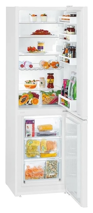 Холодильник Liebherr CUe 3331 предназначен для охлаждения, замораживания, кратковременного и длительного хранения пищевых продуктов и напитков в гостиничных комплексах, офисах, а также домашних условиях. Модель оснащена холодильной камерой сверху и морозильной камерой снизу, правосторонними перенавешиваемыми распашными дверьми, кабелем питания с евровилкой и расположенной внутри холодильной камеры электромеханической панелью управления. Боковины выполнены из стали с лакированным покрытием белого цвета, двери со скошенными внешними боковыми торцами SwingLine – из стали с лакированным покрытием белого цвета, внутренняя облицовка камер – из белого пластика, плоские полки – из прозрачного закаленного стекла, ящики холодильного отделения – из прозрачного пластика, ящики морозильного отделения и навесные полки – из белого пластика с прозрачным фронтом, решетчатая полка с хромированной поверхностью, полки декорированы окантовками серебристого оттенка, упаковка – из гофрокартона, полимерной пленки и полистирола. Комплектация: