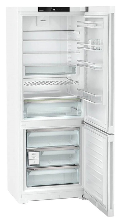 Холодильник Liebherr CNd 7723серии Plus предназначен для охлаждения, замораживания, кратковременного и длительного хранения пищевых продуктов и напитков в гостиничных комплексах, офисах, а также домашних условиях. Модель оснащена холодильной камерой сверху и морозильной камерой снизу, правосторонними перенавешиваемыми распашными дверьми, кабелем питания с евровилкой, расположенными за дверью холодильной камеры в верхней части фронта сенсорной панелью управления и монохромным жидкокристаллическим дисплеем с белой подсветкой индикации. Боковины и двери выполнены из стали с глянцевым лакированным покрытием белого цвета, внутренняя облицовка камер – из белого пластика, плоские и навесные полки – из прозрачного закаленного стекла, ящики – из белого пластика с прозрачным фронтом, ящики и полки декорированы окантовками серебристого оттенка, упаковка – из гофрокартона, полимерной пленки и полистирола.