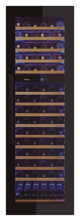 Винный шкаф Pando PVMAV 178-112 CRR предназначен для хранения при оптимальных условиях и предпродажной демонстрации бутилированного вина различных сортов в барах, ресторанах, специализированных магазинах, подсобных складских помещениях, а также домашних условиях. Модель оснащена холодильной камерой с 2 температурными зонами, правосторонней распашной дверью, вертикальной рукояткой, внутренней сенсорной панелью управления и светодиодными цифровыми дисплеями с голубой подсветкой индикации. Корпус выполнен из стали с антикоррозийным покрытием черного цвета, дверь с полным фронтальным остеклением без винтового крепежа из закаленного стекла с прозрачной дымчатой тонировкой, рукоятка – из анодированного алюминия с черной поверхностью, внутренняя облицовка камеры черного цвета, полки – из массива буковой древесины. В комплект поставки входят 15 съемных полок с направляющими для размещения бутылок, крепеж для рукоятки, инструкция по эксплуатации, гарантийный талон и заводская упаковка. Особенности: