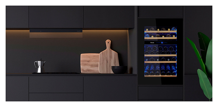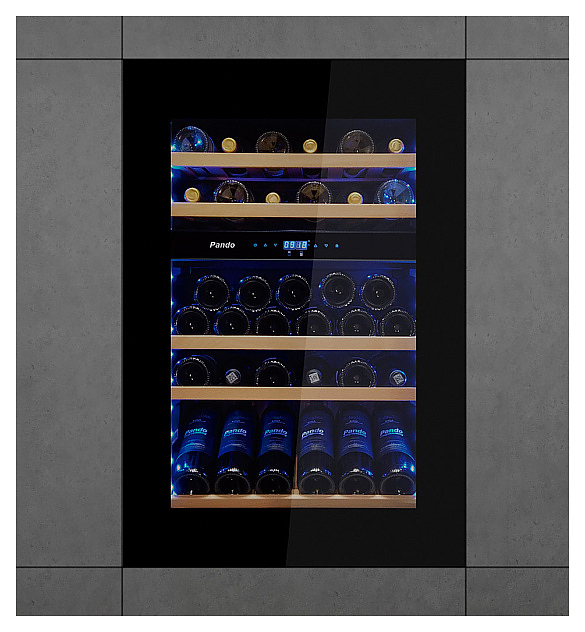Винный шкаф Pando PVMAVP 88-49 CRR предназначен для хранения при оптимальных условиях и предпродажной демонстрации бутилированного вина различных сортов в барах, ресторанах, специализированных магазинах, подсобных складских помещениях, а также домашних условиях. Модель оснащена холодильной камерой с 2 температурными зонами, правосторонней распашной дверью, внутренней сенсорной панелью управления и светодиодными цифровыми дисплеями с голубой подсветкой индикации. Корпус выполнен из стали с антикоррозийным покрытием черного цвета, дверь с полным фронтальным остеклением без винтового крепежа из закаленного стекла с прозрачной дымчатой тонировкой, внутренняя облицовка камеры черного цвета, полки – из массива буковой древесины.