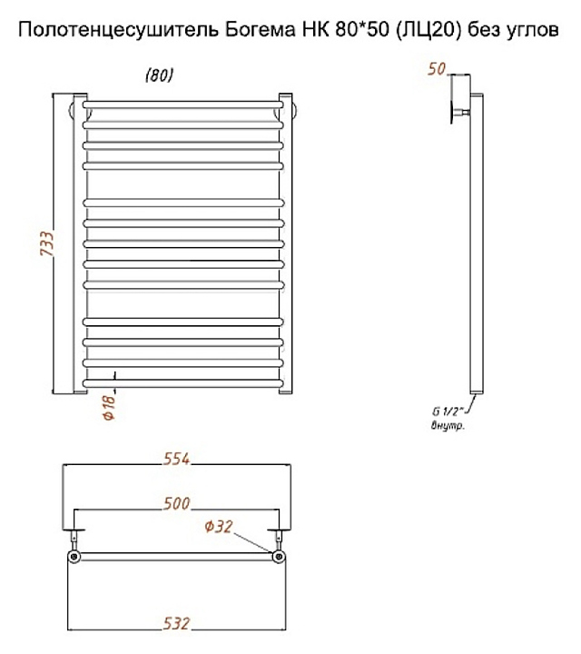 Полотенцесушитель водяной Тругор Богема НК 80х50 см (без углов), хром