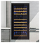 Винный шкаф Pando PVMAV 124-70 CRR предназначен для хранения при оптимальных условиях и предпродажной демонстрации бутилированного вина различных сортов в барах, ресторанах, специализированных магазинах, подсобных складских помещениях, а также домашних условиях. Модель оснащена холодильной камерой с 2 температурными зонами, правосторонней распашной дверью, вертикальной рукояткой, внутренней сенсорной панелью управления и светодиодными цифровыми дисплеями с голубой подсветкой индикации. Корпус выполнен из стали с антикоррозийным покрытием черного цвета, дверь с полным фронтальным остеклением без винтового крепежа из закаленного стекла с прозрачной дымчатой тонировкой, рукоятка – из анодированного алюминия с черной поверхностью, внутренняя облицовка камеры черного цвета, полки – из массива буковой древесины. В комплект поставки входят 9 съемных полок с направляющими для размещения бутылок, крепеж для рукоятки, инструкция по эксплуатации, гарантийный талон и заводская упаковка. Особенности:
