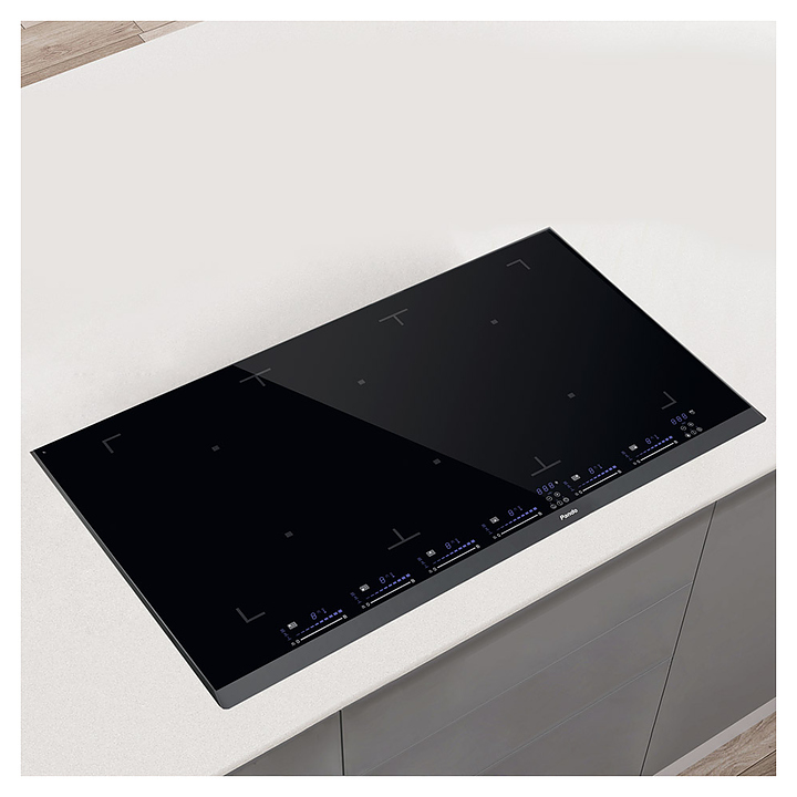 Индукционная варочная панель Pando PI-3500 AiRLINKпредназначена для приготовления большого ассортимента блюд в домашних условиях. Принцип работы основан на непосредственном нагреве металлической посуды создаваемыми высокочастотным магнитным полем индуцированными вихревыми токами. Модель оснащена 6 варочными зонами, кабелем питания, сенсорной панелью управления и светодиодными дисплеями с голубой подсветкой индикации. Рабочая поверхность выполнена из высококачественной стеклокерамики Keraspectrum черного цвета со скошенной фронтальной кромкой.
