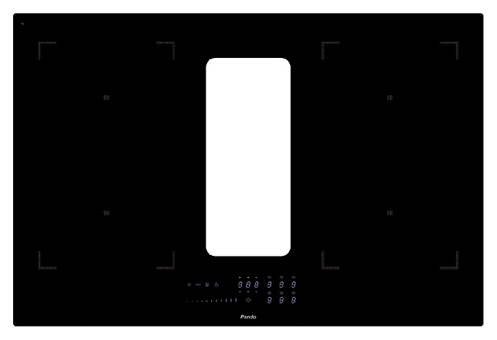 Индукционная варочная панель Pando E-390/78 предназначена для приготовления большого ассортимента блюд в домашних условиях. Принцип работы основан на непосредственном нагреве металлической посуды создаваемыми высокочастотным магнитным полем индуцированными вихревыми токами. Модель оснащена 4 варочными зонами, кабелем питания, сенсорной панелью управления и светодиодными дисплеями с голубой подсветкой индикации. Рабочая поверхность выполнена из высококачественной стеклокерамики Keraspectrum черного цвета со скошенной фронтальной кромкой.